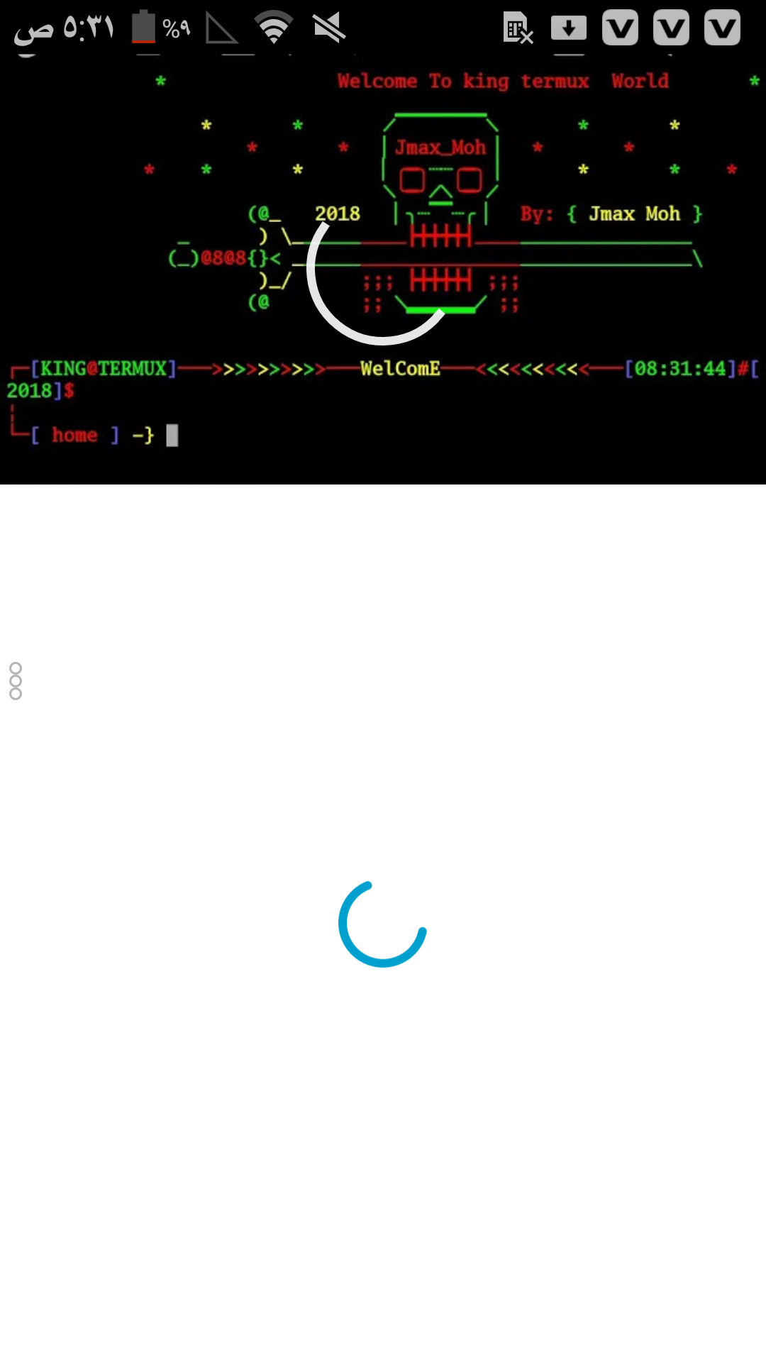 الُسِلُامٌ ْعلُيَكِمٌ شِبّابّ شِرَحُنَا الُيَوَمٌ ُهوَ تْثُبّيَتْ مٌحُثُ الُجْمٌجْمٌُه وَالُسِيَفَ بّطِرَيَقًُه بّسِيَطُِه جْدِا بّكِوَدِ فَقًطِ ُهذَا ُهوَ الُكِوَدِ echo -e “\e[1;32m * \e[1;31m Welcome To king termux World \e[1;32m * \e[1;33m* \e[1;32m * ╱▔▔▔▔▔▔▔▔╲ * \e[1;33m * \e[1;32m \e[1;31m * \e[1;31m * \e[1;32m ▏\e[1;31mKING_Moh\e[1;32m▕ \e[1;31m* \e[1;31m * \e[1;32m \e[1;31m* \e[1;32m * \e[1;33m * \e[1;32m▕\e[1;31m ╭━╮\e[1;32m┈┈\e[1;31m╭━╮\e[1;32m▕ \e[1;33m * \e[1;32m * \e[1;31m * \e[1;32m ╲\e[1;31m╰━╯\e[1;32m╱╲\e[1;31m╰━╯\e[1;32m╱ \e[1;32m (@\e[1;33m_\e[1;31m \e[1;32m \e[1;33m2018\e[1;32m \e[1;32m ▏╮┈▔▔┈╭▕ \e[1;31m By:\e[1;32m {\e[1;33m KING Moh \e[1;32m} \e[1;32m _ \e[1;33m ) \_\e[1;32m_____\e[1;31m____\e[1;31m┣╋╋╋╋┫\e[1;31m____\e[1;32m_______________ \e[1;32m (_)\e[31m@8@8\e[1;32m{}< \e[1;33m_\e[1;32m_____\e[1;31m________\e[1;31m______\e[1;32m_______________\\ \e[1;33m )_/ \e[1;31m ;;; ┣╋╋╋╋┫ ;;; \e[1;32m (@ \e[1;31m ;;\e[1;32m ╲▂▂▂▂▂▂╱ \e[31m;; \e[1;31m ” echo -e PS1=’\[\033[01;31m\]┌─\[\033[01;34m\][\[\033[01;32m\]KING\[\033[01;31m\]@\[\033[01;32m\]TERMUX\[\033[01;34m\]]\[\033[01;31m\]───\e[1;31m>\e[1;33m>\e[1;32m>\e[1;31m>\e[1;33m>\e[1;32m>\e[1;31m>\e[1;33m>\e[1;32m>\e[1;31m>\e[1;31m───\[\033[01;33m\]WelComE\[\033[01;31m\]───\e[1;31m<\e[1;32m<\e[1;33m<\e[1;31m<\e[1;32m<\e[1;33m<\e[1;31m<\e[1;32m<\e[1;33m<\e[1;31m<\e[1;31m───\[\033[01;34m\][\[\033[01;32m\]\t\[\033[01;34m\]]\[\033[01;31m\]#\[\033[01;34m\][\[\033[01;32m\]2018\[\033[01;34m\]]\[\033[01;31m\]$ \[\033[01;31m\]¦ \[\033[01;31m\]└─\[\033[01;34m\][ \[\033[01;31m\]${PWD/*\//}\[\033[01;34m\] ]\[\033[01;33m\] -\[\033[01;33m\]}\[\033[01;33m\] ‘ نَدٌِخلُ فَيَ تْرَمٌكِسِ نَسِاوَيَ 1- pkg install cowsay 2- pkg install nano 3- pkg install toilet بّْعدِ مٌا نَثُبّتْ ُهالُِاوَمٌرَ نَسِاوَيَ cd .. cd usr cd etc nano bash.bashrc نَحُذَفَ الُ PS1=’$’ وَنَسِاوَيَ clear وَبّْعدُِه echo -e الُانَ نَنَسٌِخ الُكِوَدِ وَنَلُصّقًُه فَيَ تْرَمٌكِسِ لُلُحُفَظٌ نَضُغًطِ زُرَ ٌخفَضُ الُصّوَتْ مٌْع حُرَفَ x لُلُحُفَضُ نَسِاوَيَ y مٌثُلُ مٌا شِفَتْوَا تْمٌ الُتْثُبّيَتْ وَدِاْعا